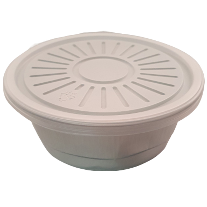 El bowl de papel aluminio es un molde redondo ideal para sopas o ensaladas. Viene con tapas de diferentes alturas, como domo o planas. Es desechable, de un solo uso, y está diseñado para preparar, hornear, calentar o servir comidas calientes (como sopas con tapa plana) o frías (como ensaladas con tapa domo). Su material extra fuerte y las tapas plásticas lo hacen perfecto para estas aplicaciones. El empaque tiene paredes lisas (smooth wall) y está disponible en paquetes con pequeñas cantidades.